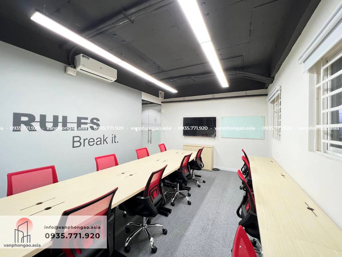 • Phòng họp: đầy đủ tiện nghi hỗ trợ khách thuê khi có nhu cầu, miễn phí 5h/ Tháng (Tuỳ gói).